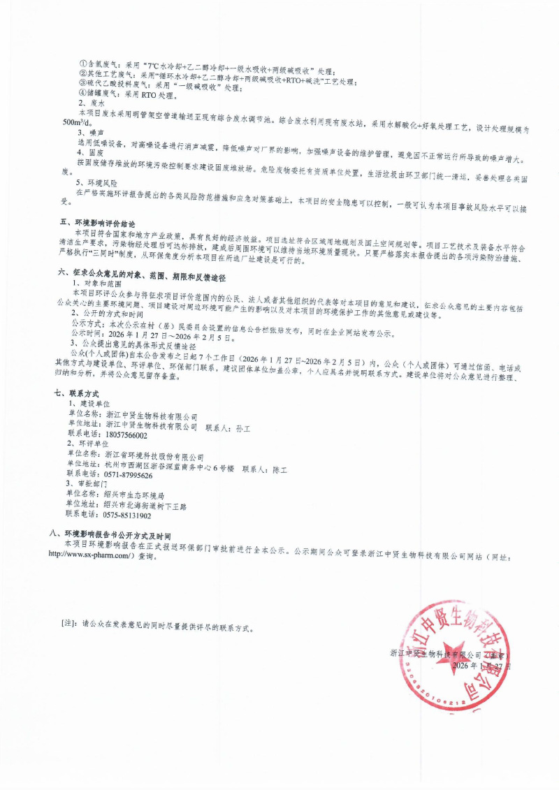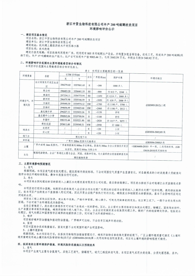 附件:浙江中贤生物科技有限公司年产 200 吨硫酮技改项目环境影响报告书( 备案稿 ).pdf